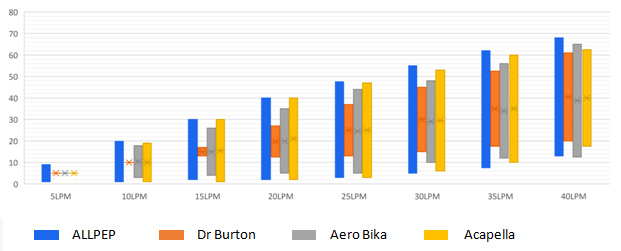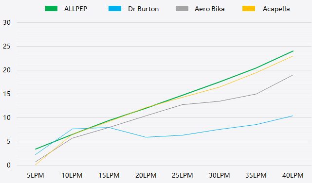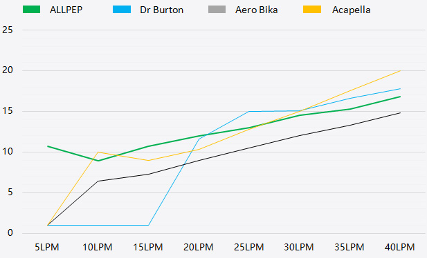 資料來源: Performance Characteristics of Positive Expiratory Pressure Devices / Respiratory Care March 2021, 66 (3) 482-493; DOI:
