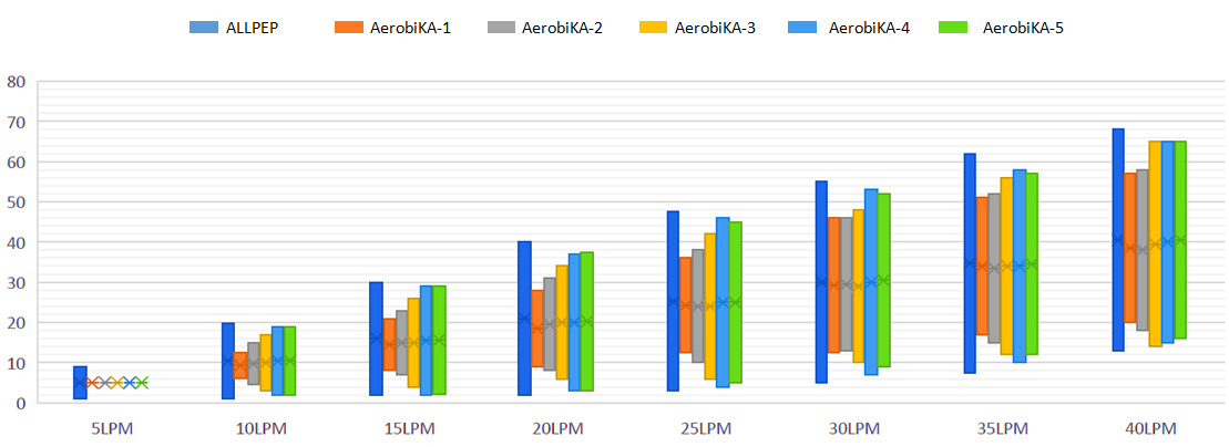 實驗證明:AllPEP無段調整比可調式的AerobiKA(5段),在不同的流量震動幅度其表現更佳。 測試設備: ASL 5000