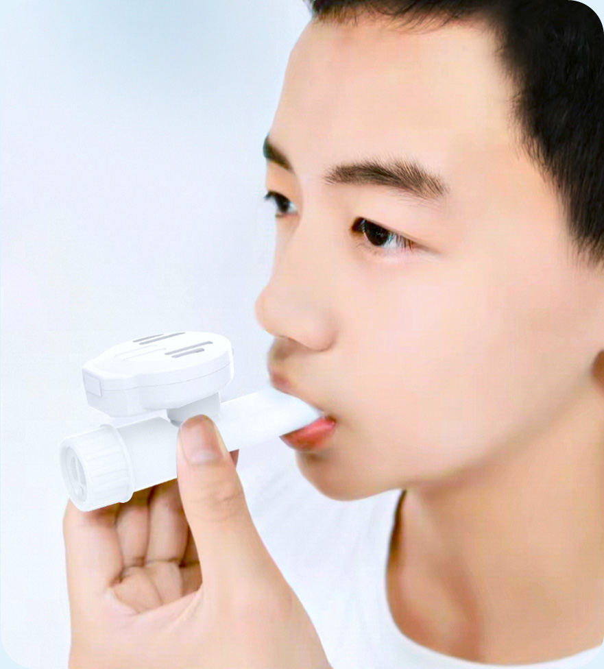 使用時請病人平靜吸氣後憋氣約2-3秒,再緩慢吐氣,吐氣時不可用力,此時可聽見震盪器發出「噗噗噗」之聲響。 每吸吐氣10-20次視為一循環,再請病人配合深呼吸咳嗽或哈氣(Huff)咳嗽技術,可得到更好的排痰效果。